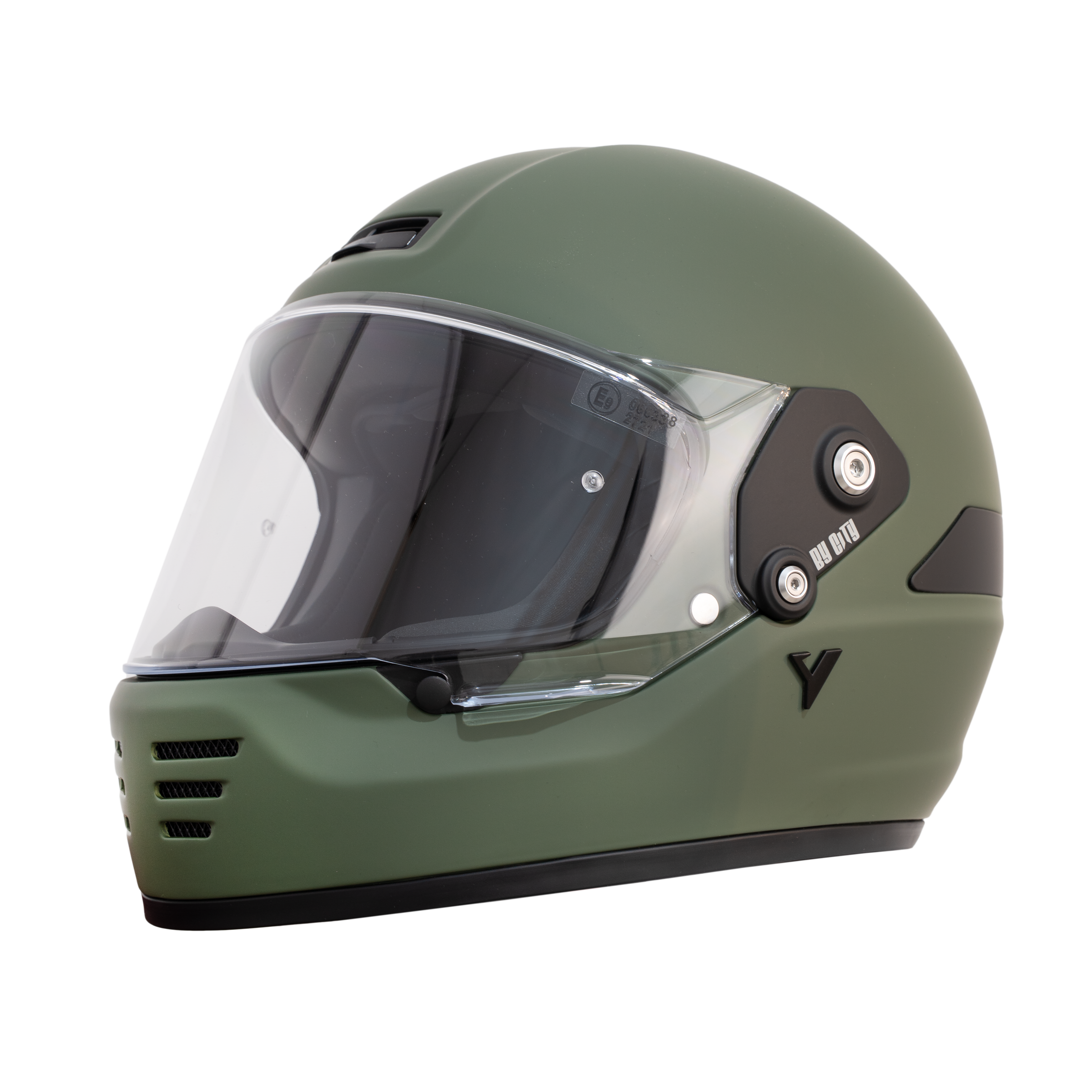 Es un casco integral con un diseño sobrio y moderno en acabado verde mate, que combina funcionalidad y estilo. Su calota está hecha de fibra de vidrio, lo que le proporciona una estructura ligera y resistente. En su interior incluye un acolchado multidensidad para una mejor absorción de impactos.