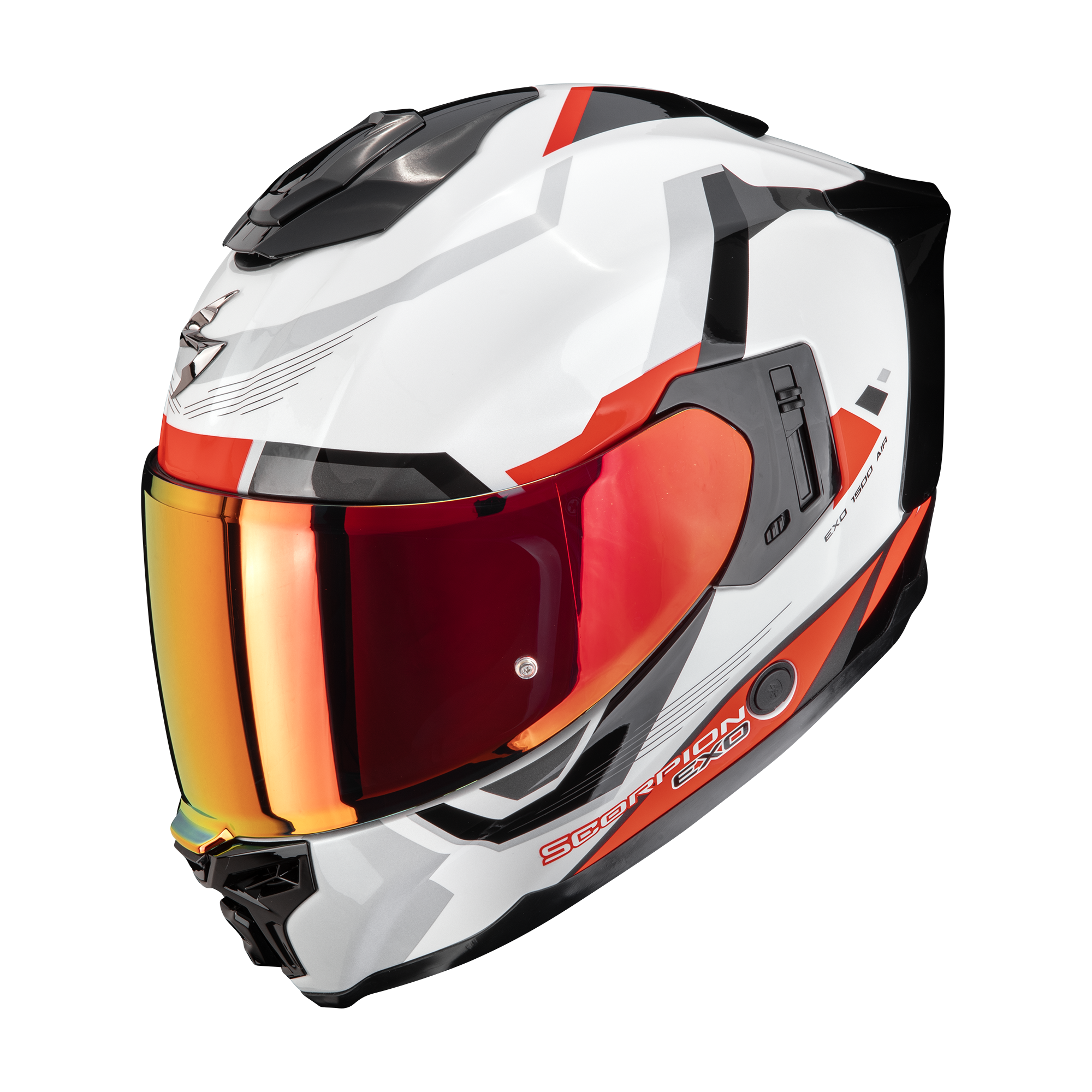 El Scorpion EXO 1500A Arena White Red és un casc integral de tall esportiu dissenyat per a motoristes que volen control, agilitat i una presència impactant a la carretera. El seu perfil aerodinàmic i els detalls en blanc i vermell ressalten una estètica dinàmica i agressiva que reflecteix la passió per la velocitat.