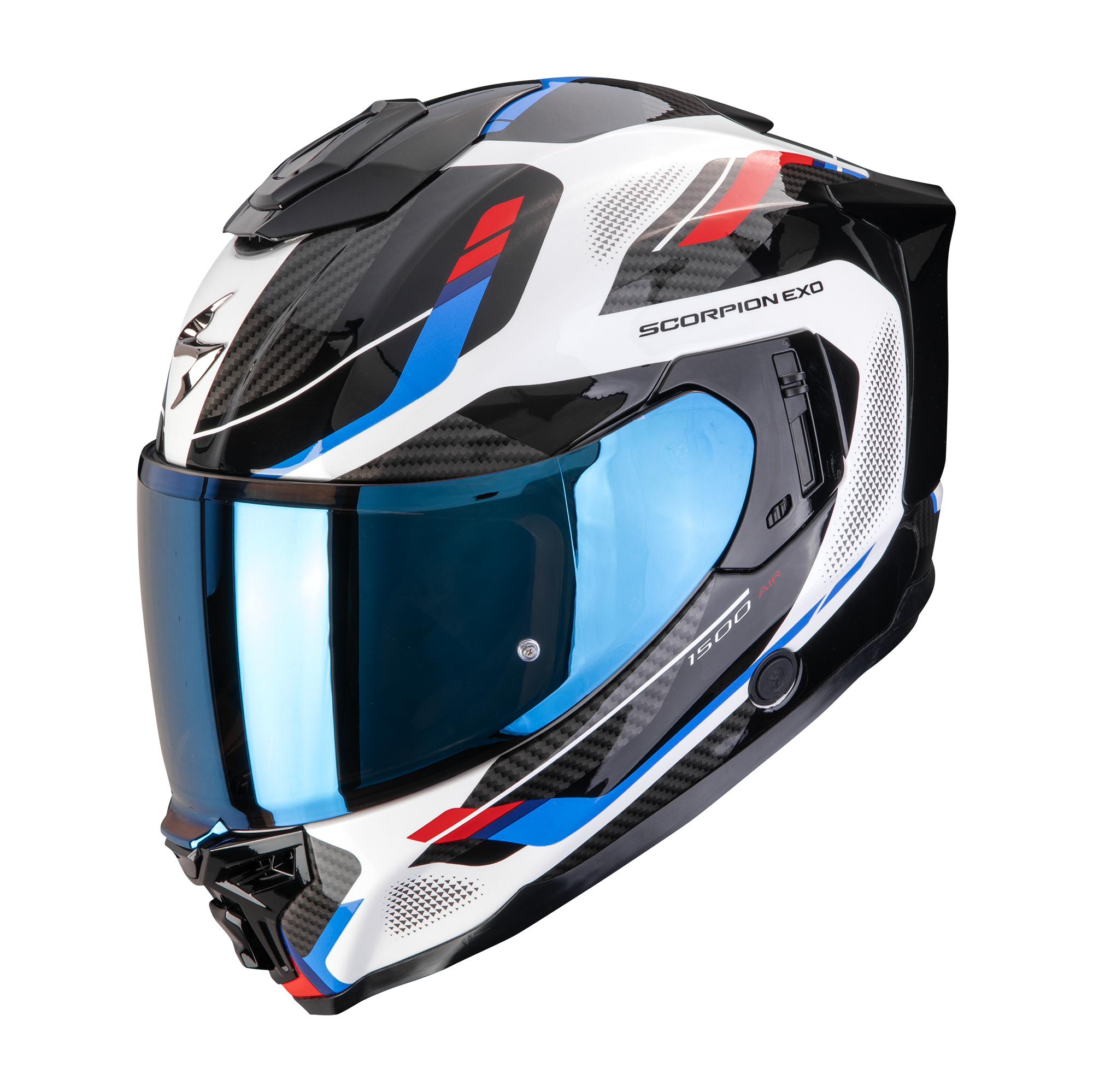 El Scorpion EXO 1500A Sleek White Red Blue és un casc modular versàtil que combina comoditat, seguretat i un disseny atractiu. Els colors blanc, vermell i blau li aporten un estil esportiu i dinàmic que destaca a la carretera.