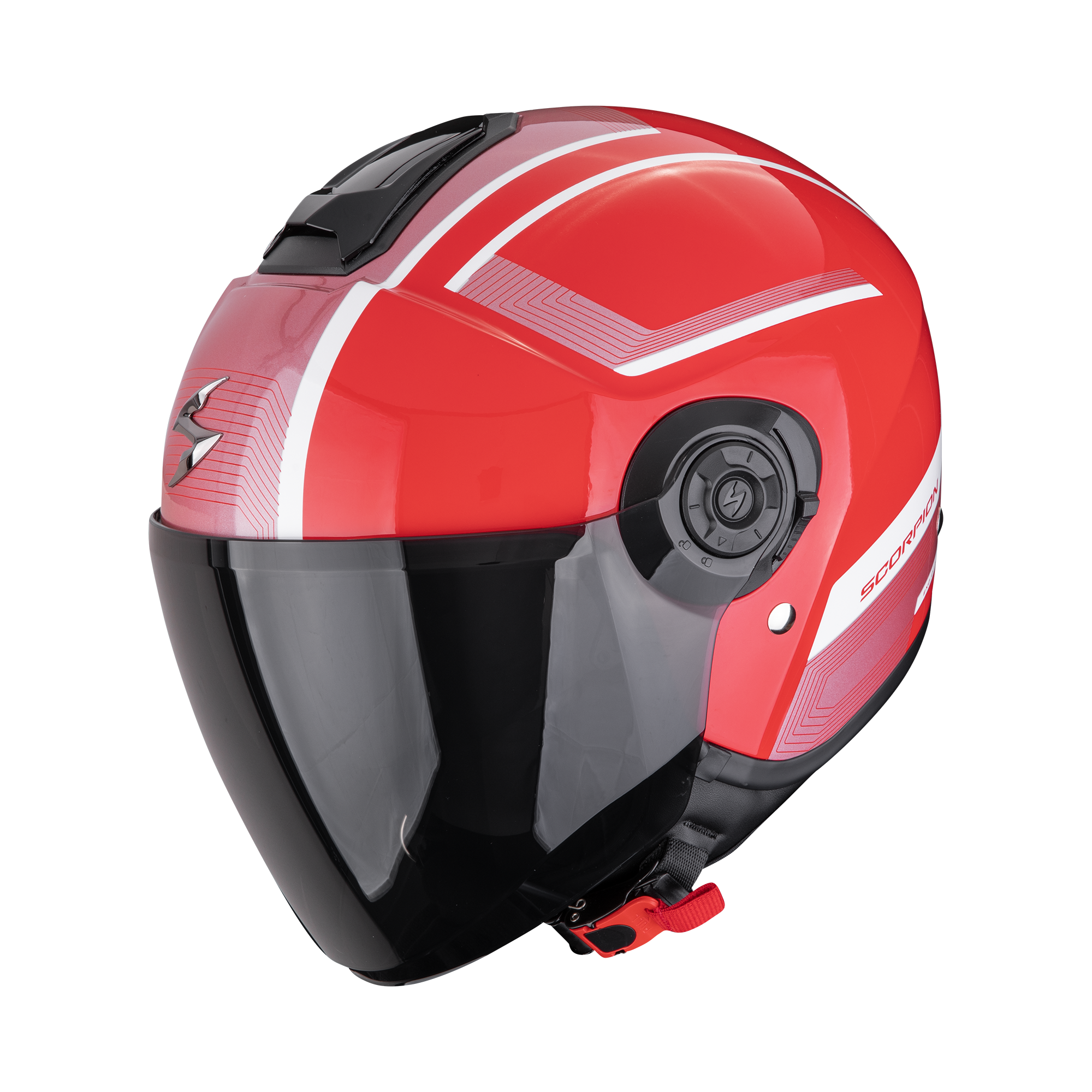 El Scorpion EXO City II Cosmos Red Silver destaca con un diseño urbano atrevido: la combinación de rojo y plata le da un look moderno y dinámico, junto con el distintivo mensaje “Get Stung” — ideal para quienes buscan un casco con personalidad.