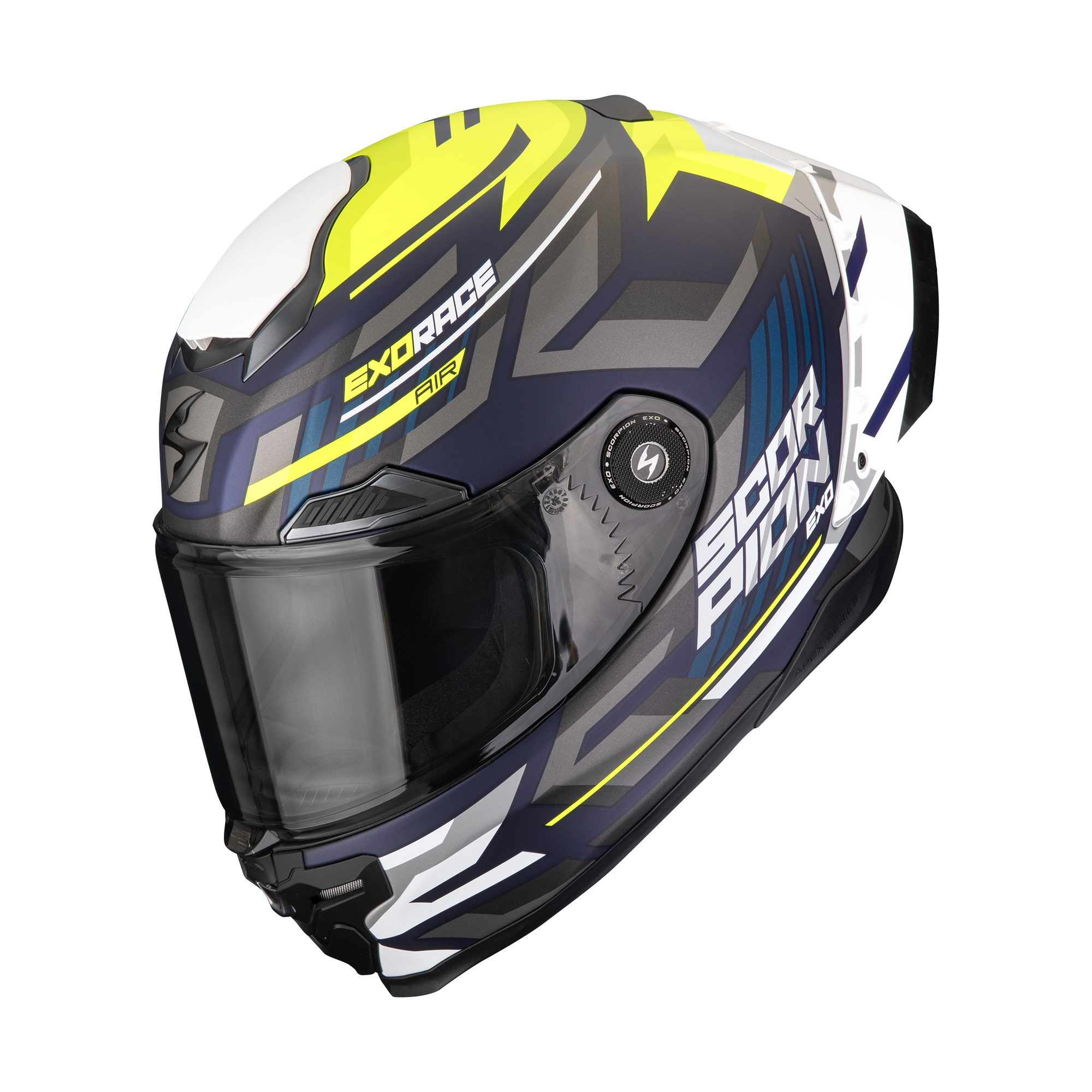 El Scorpion EXO-Race Kobra Matt Blue Neon Yellow “Get Stung” és un casc integral d’estil esportiu, dissenyat per a motoristes que volen una imatge racing amb un disseny molt cridaner. L’acabat en blau mat amb detalls groc neó aporta una presència agressiva i molt visible a la carretera.